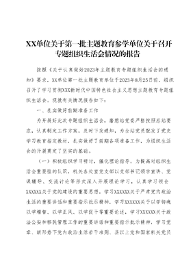 XX单位关于第一批主题教育参学单位关于召开专题组织生活会情况的报告.docx