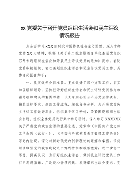xx党委关于召开党员组织生活会和民主评议情况报告.docx