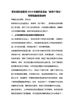党支部纪检委员2024年组织生活会“新四个带头”对照检查发言材料(2025年组织生活会).docx