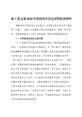 政工党支部2024年度组织生活会对照检查材料(四个带头+典型案例剖析).docx
