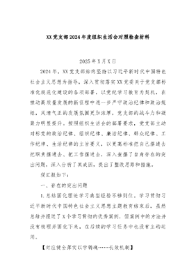 2024年组织生活会支部班子对照检查材料(2025组织生活会).docx