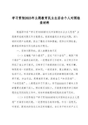 学习贯彻2023年主题教育民主生活会个人对照检查材料.docx