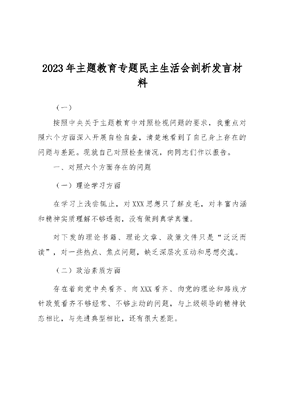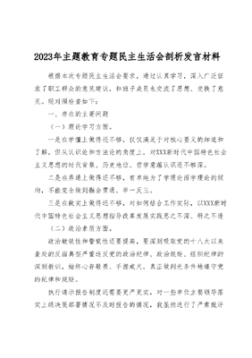 2023年主题教育专题民主生活会剖析发言材料.doc