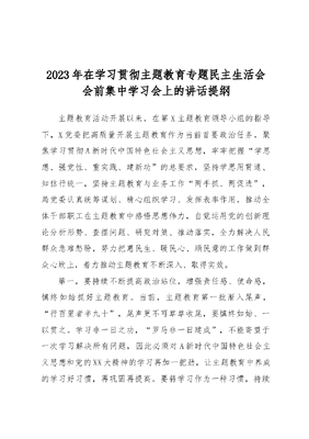 2023年在学习贯彻主题教育专题民主生活会会前集中学习会上的讲话提纲.docx