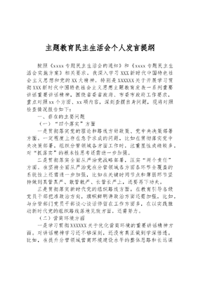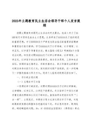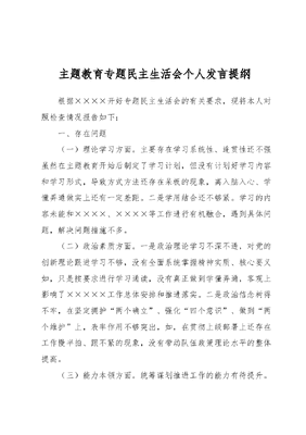 2023年主题教育专题民主生活会个人发言提纲范文.docx