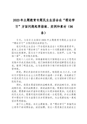(96条)2023年主题教育专题民主生活会在“理论学习”方面问题起草指南、实例和素材.docx