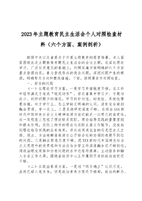 2023年主题教育民主生活会个人对照检查材料(六个方面、案例剖析).docx
