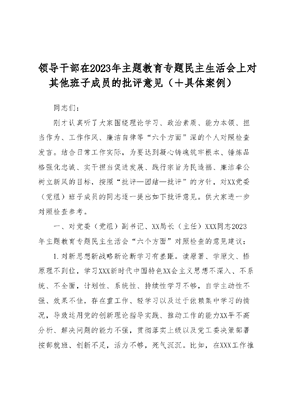 领导干部在2023年主题教育专题民主生活会上对其他班子成员的批评意见(+具体案例).docx