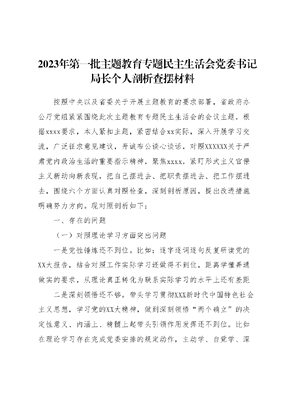 2023年第一批主题教育专题民主生活会党委书记局长个人剖析查摆材料.docx