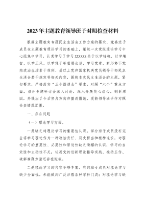 2023年主题教育民主生活会领导班子对照检查材料.docx