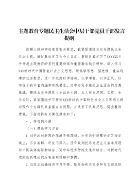 主题教育专题民主生活会中层干部党员干部发言提纲.docx
