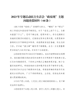 (64条)2023年专题活动民主生活会“政绩观”主题问题查摆材料.docx