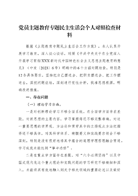 党员主题教育专题民主生活会个人对照检查材料.docx