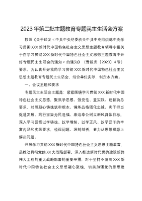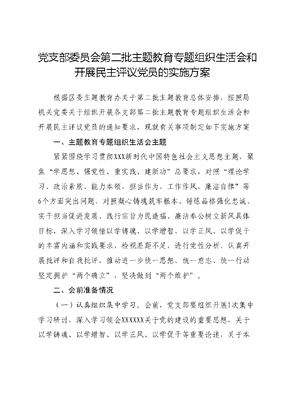 党支部委员会第二批主题教育专题组织生活会和开展民主评议党员的实施方案.docx