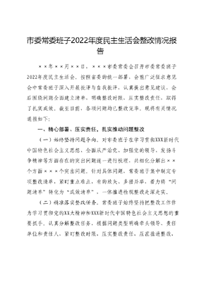 市委常委班子2022年度民主生活会整改情况报告(新六个对照方面).docx