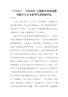 主题教育总结会暨专题民主生活会情况通报会讲话.docx