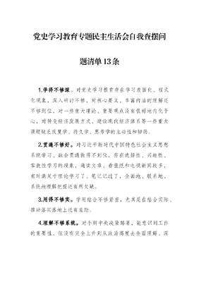 (13条)党史学习教育专题民主生活会自我查摆问题清单.docx