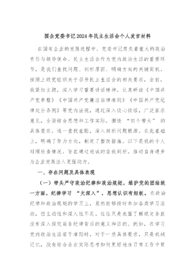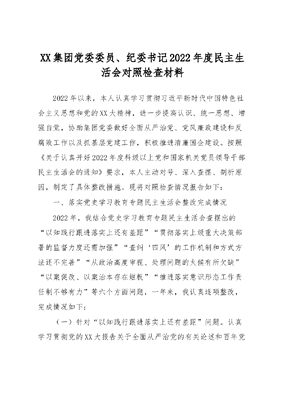 XX集团党委委员、纪委书记2022年度民主生活会对照检查材料.docx