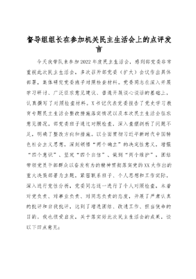 督导组组长在参加机关民主生活会上的点评发言.docx