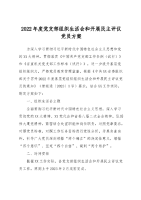 2022年度党支部组织生活会和开展民主评议党员方案.docx