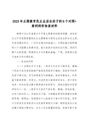 2023年主题教育民主生活会班子的6个对照+案例剖析检查材料.docx