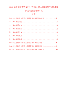 (3篇)2023年主题教育专题民主生活会谈心谈话活动方案及谈心谈话会议记录.docx