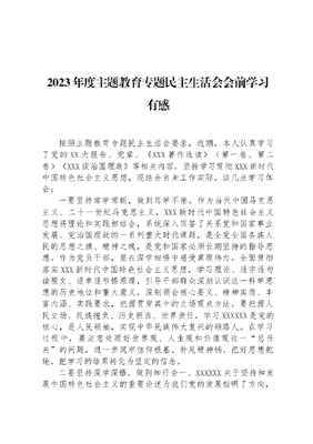 2023年度主题教育专题民主生活会会前学习有感.docx