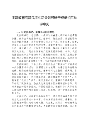 主题教育专题民主生活会领导班子成员相互批评意见.docx