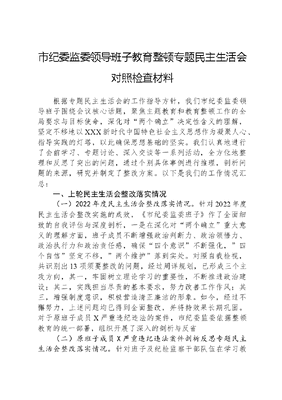 市纪委监委领导班子教育整顿专题民主生活会对照检查材料.docx