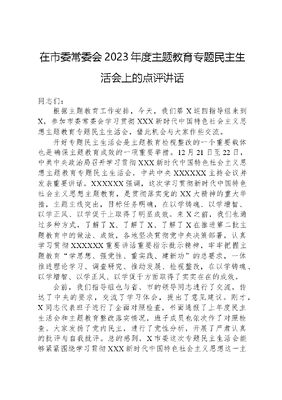 在市委常委会2023年度主题教育专题民主生活会上的点评讲话.docx