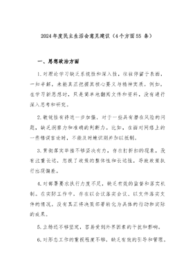 2024年度民主生活会意见建议(4个方面55 条).docx