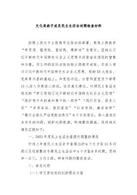 2023年党委民主生活会对照“六个方面”剖析材料文本.docx