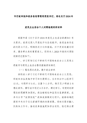 市行政审批和政务信息管理局党组书记、局长关于2024年度民主生活会个人对照检视剖析材料.docx