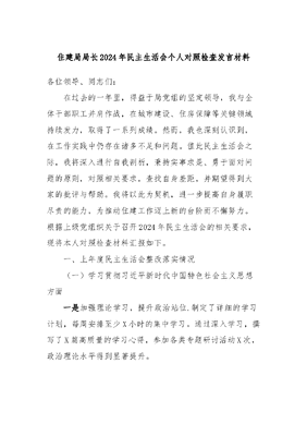 住建局局长2024年民主生活会个人对照检查发言材料.docx