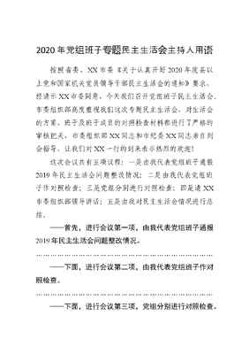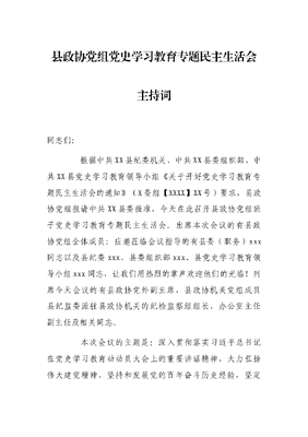 县政协党组党史学习教育专题民主生活会主持词.docx