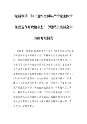 党员领导干部“落实全面从严治党主体责任营造良好政治生态”专题民主生活会六方面对照检查.docx