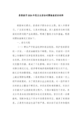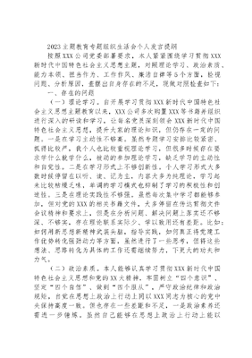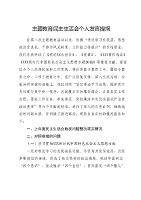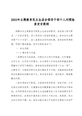 2023年主题教育民主生活会领导干部个人对照检查发言提纲.docx