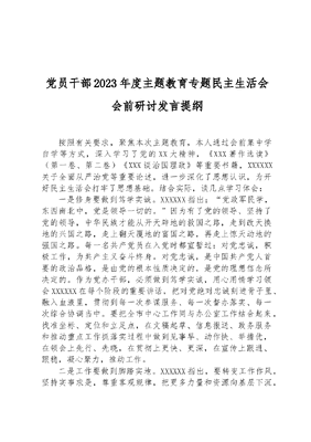党员干部2023年度主题教育专题民主生活会会前研讨发言提纲.docx