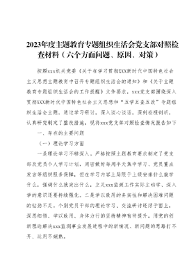 2023年度主题教育专题组织生活会党支部对照检查材料(六个方面问题、原因、对策).docx