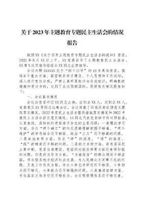 关于2023年主题教育专题民主生活会的情况报告.docx