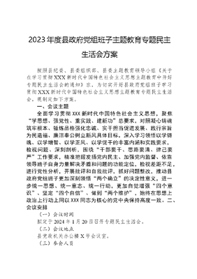 2023年度县政府党组班子主题教育专题民主生活会方案.docx
