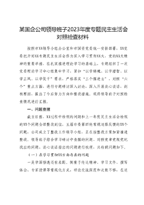 某国企公司领导班子2023年度专题民主生活会对照检查材料(新六个对照方面).docx