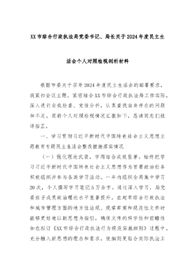 XX市综合行政执法局党委书记、局长关于2024年度民主生活会个人对照检视剖析材料.docx