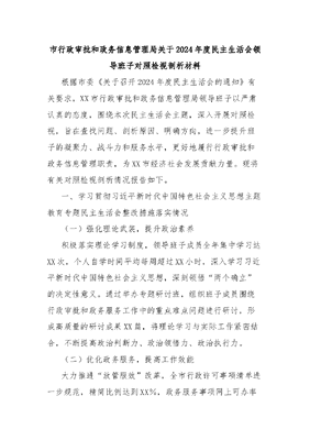 市行政审批和政务信息管理局关于2024年度民主生活会领导班子对照检视剖析材料.docx