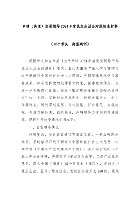 乡镇(街道)主要领导2024年度民主生活会对照检查材料(四个带头+典型案例).docx