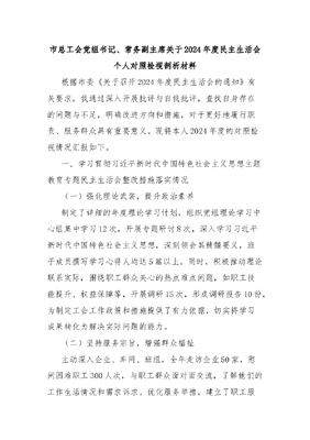 市总工会党组书记、常务副主席关于2024年度民主生活会个人对照检视剖析材料.docx