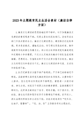 2023年主题教育民主生活会素材(廉洁自律方面).docx