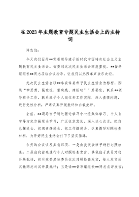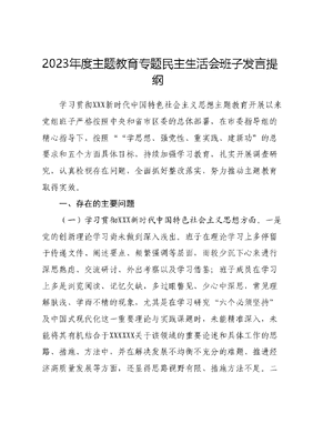 2023年度主题教育专题民主生活会班子发言提纲(新六个对照方面).docx