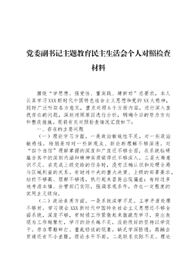 党委副书记主题教育民主生活会个人对照检查材料.docx