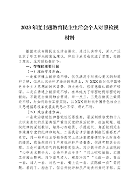 (2篇)2023年度主题教育民主生活会个人检视剖析材料.docx